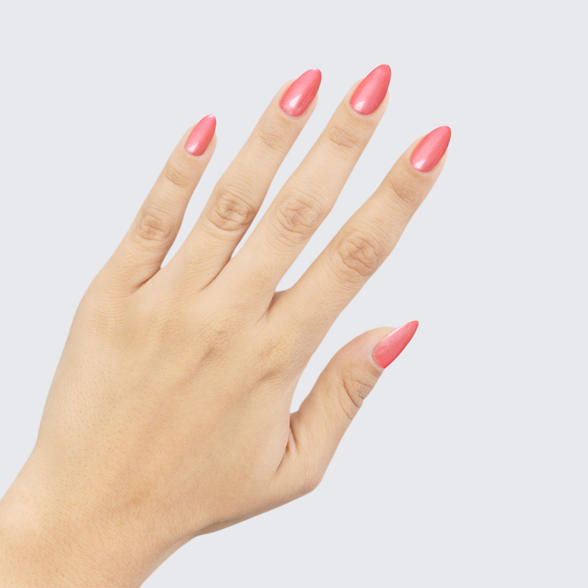 You’ll hold your head higher with this gorgeous, pearly reddish pink on hand.